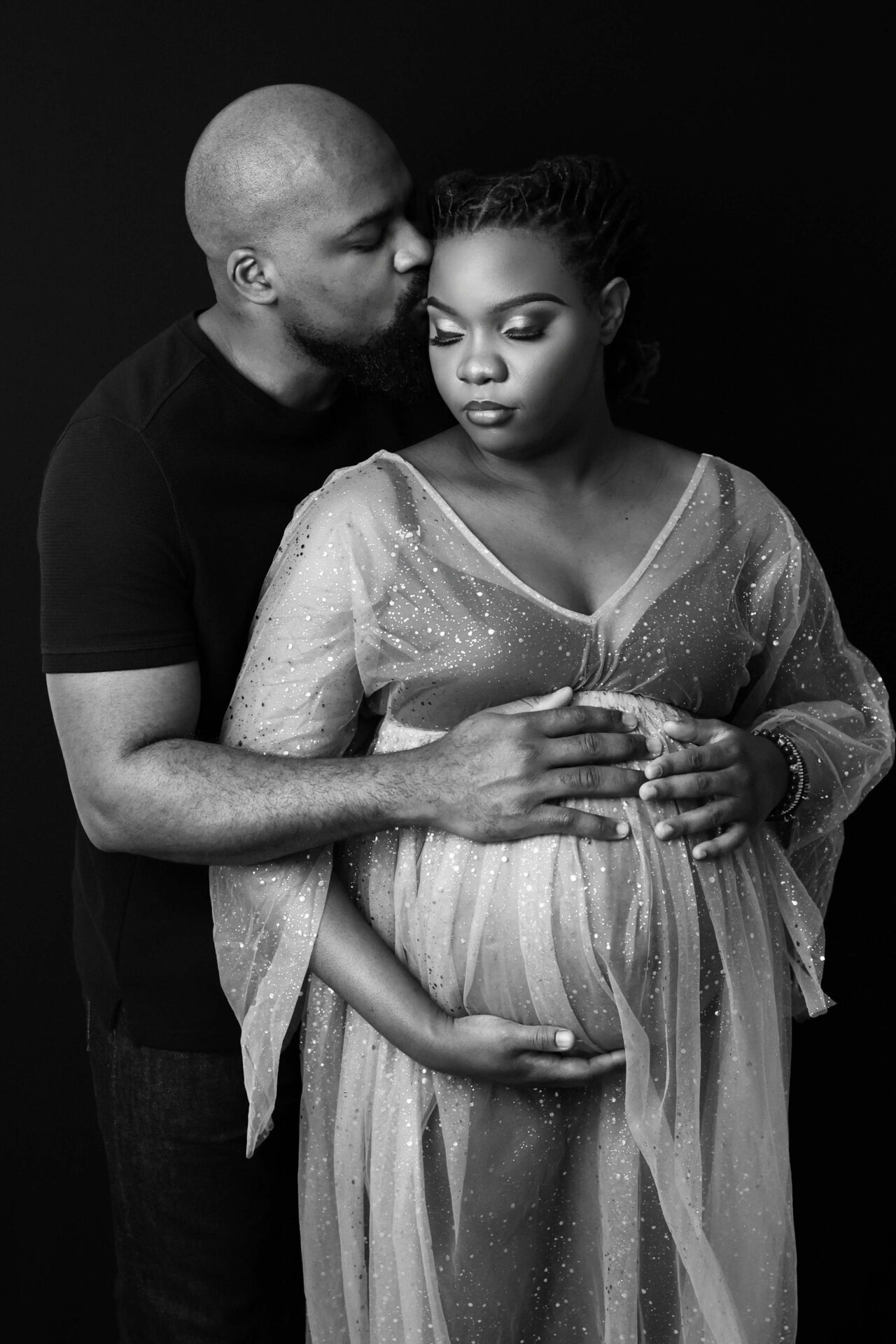 Couple grossesse noir et blanc