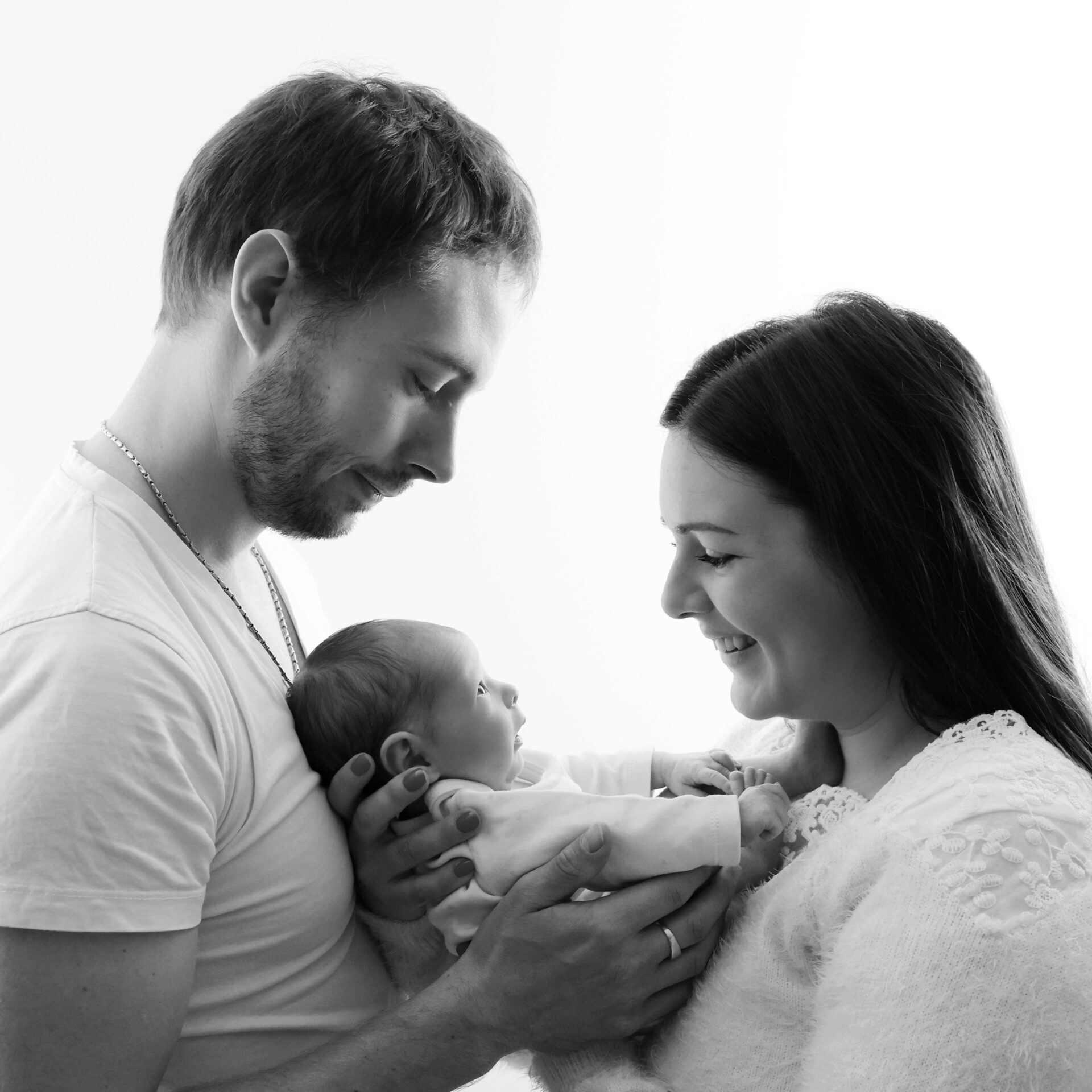 Couple avec bébé noir et blanc